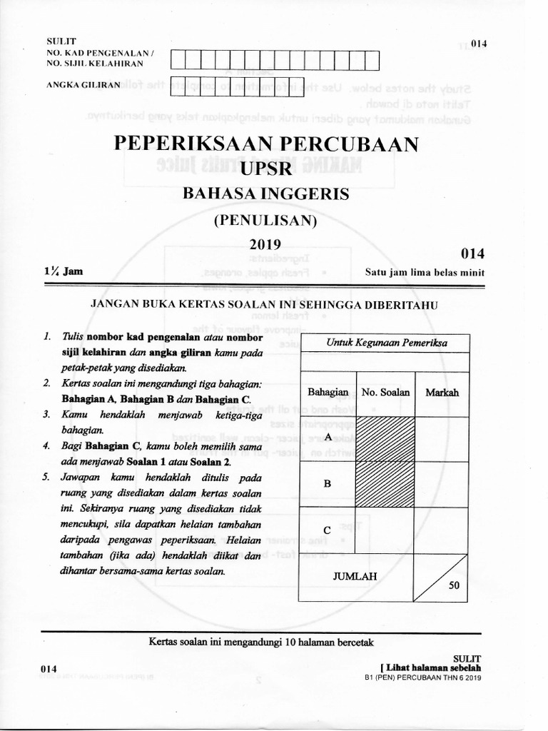 Percubaan Upsr 2019 Bi Penulisan Kelantan Jawapan Pdf