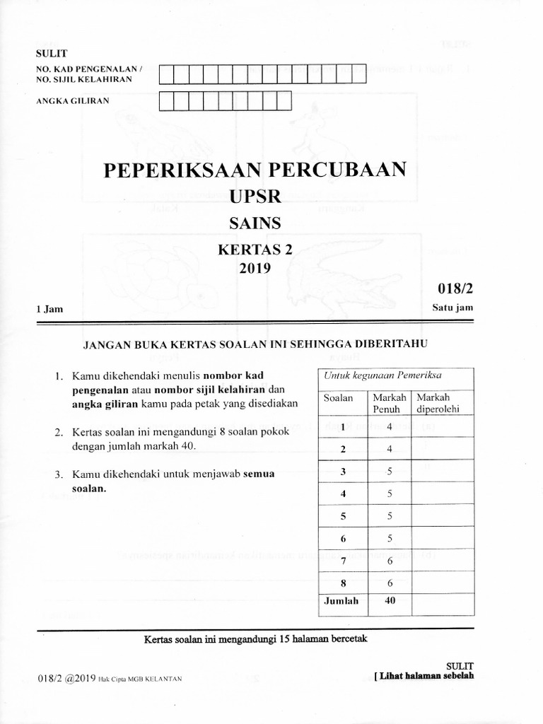 Soalan Percubaan Upsr 2019 Sains Negeri Kelantan